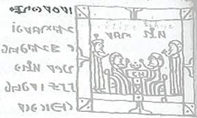 This last image holds a wealth of possibility. It shows a meeting between Jesus and someone whose name or title is given above his head. This name or title shares two characters with the opening formula, including the first character for the word "day". If the underlying language is Albanian or South Slavic, we would expect the person to have a d near the end of his name. If it is Romanian, we would expect a z, and if Hungarian an n.